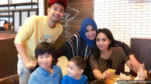 Nagita memakai busana terbuka saat mengajak Rafathar ke ultah Gavrel yang juga dihadiri Rieta dan suaminya, Basuki.